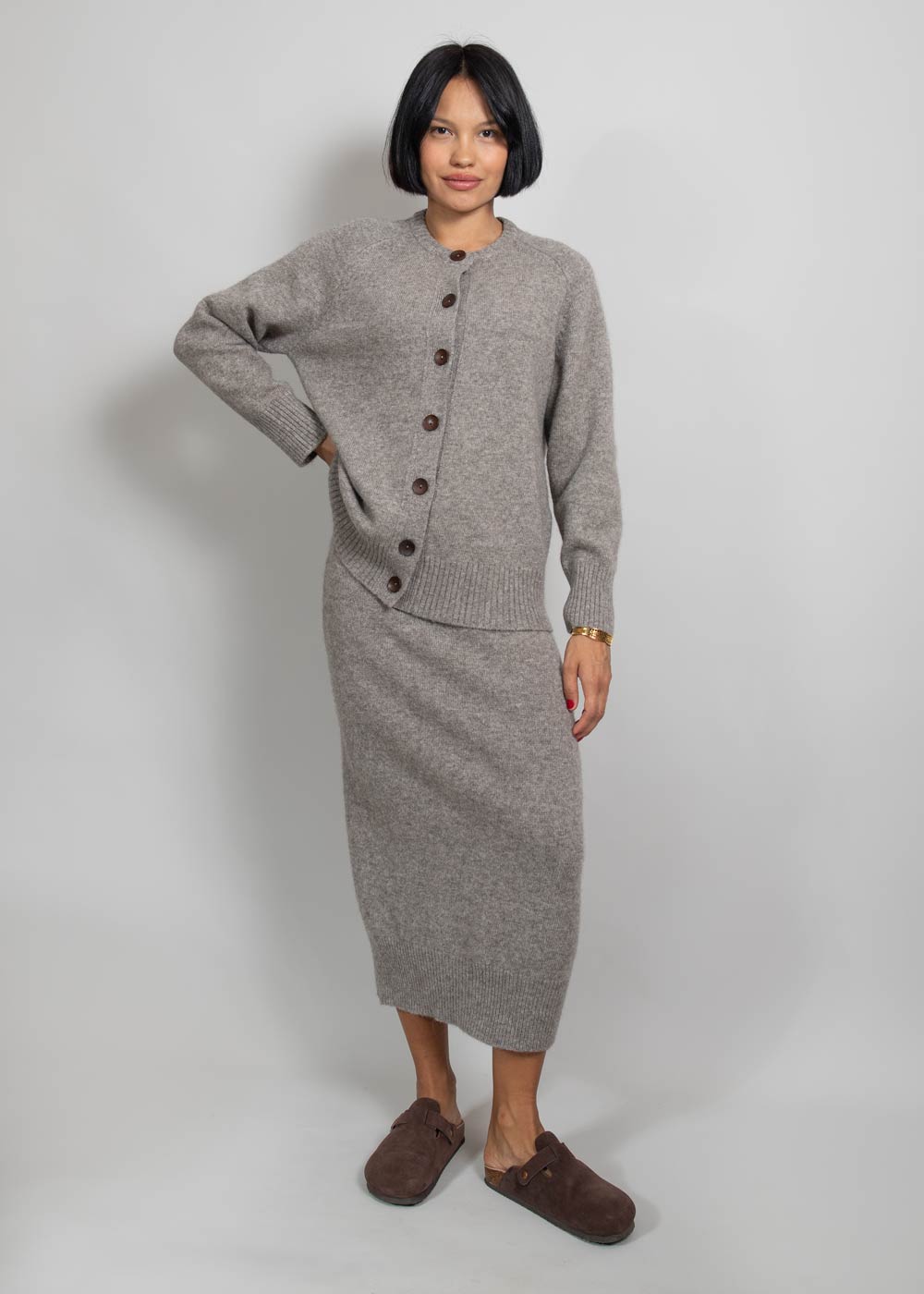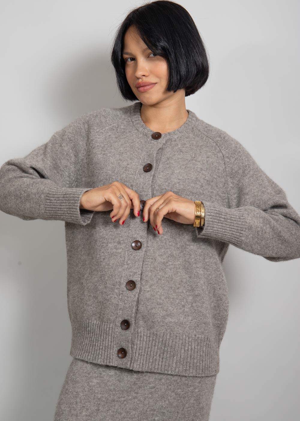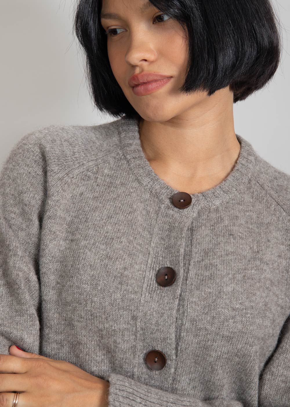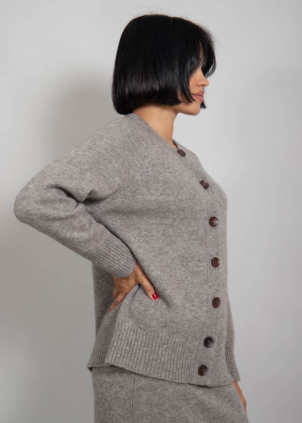 Классический серого цвета кардиган для женщин, которые отдают предпочтение элегантной одежде, подчеркивающей индивидуальность.