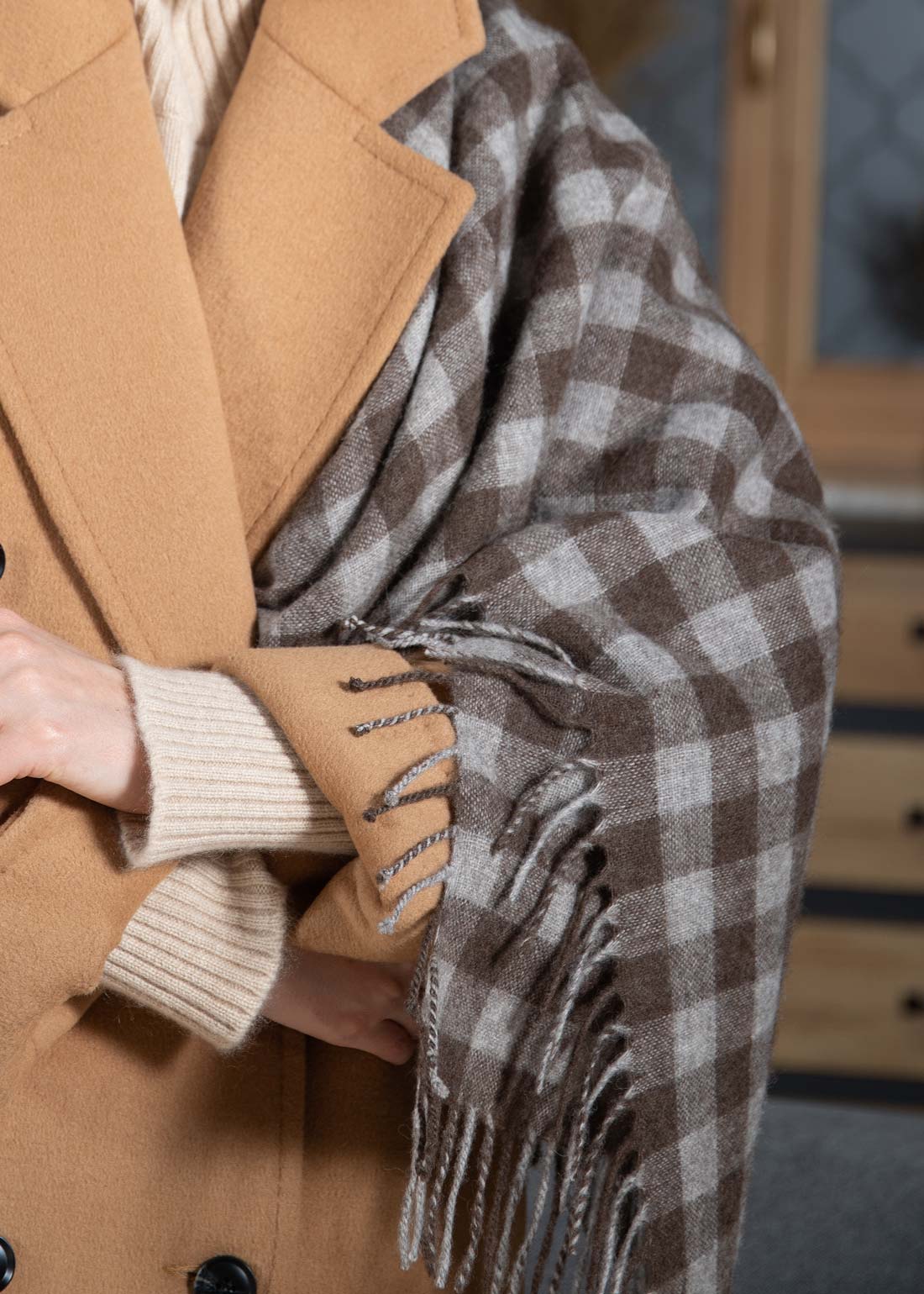 Благодаря особым свойствам шерсти яка, платок, прилегая к телу, сберегает тепло особенно бережно.