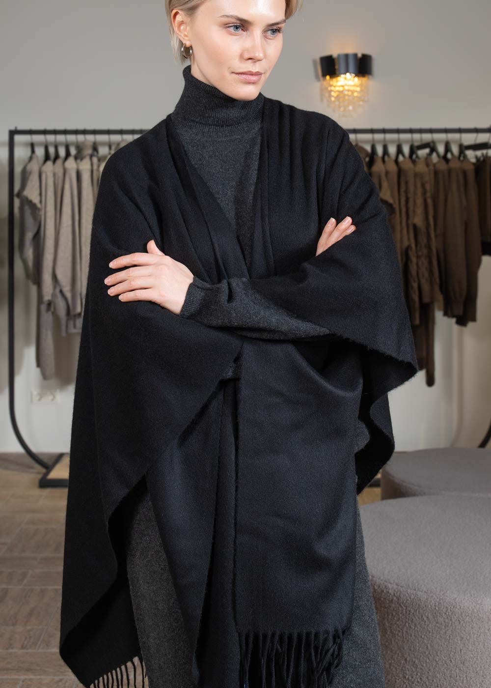 Будьте первым, кто оставит отзыв "Пончо кашемировое черное 780-9"